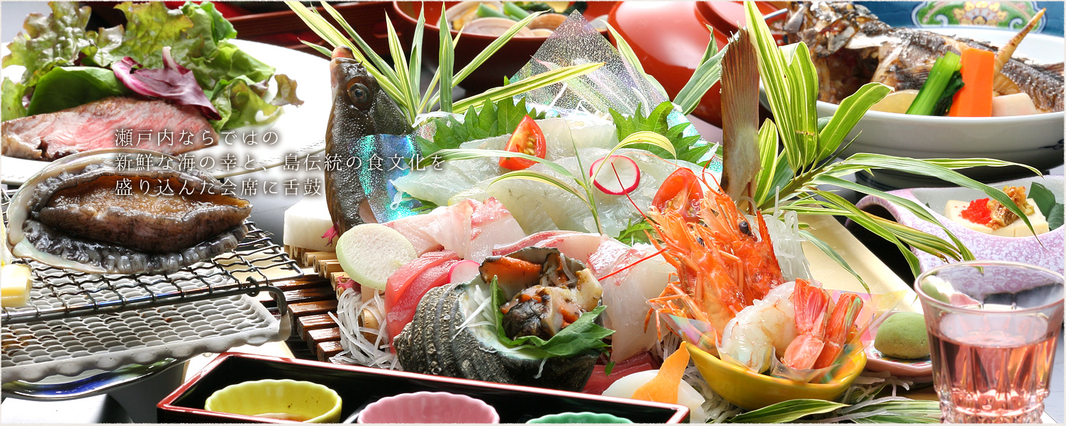 Enjoy a delicious seafood-filled meal while gazing out at the beautiful Seto Inland Sea.